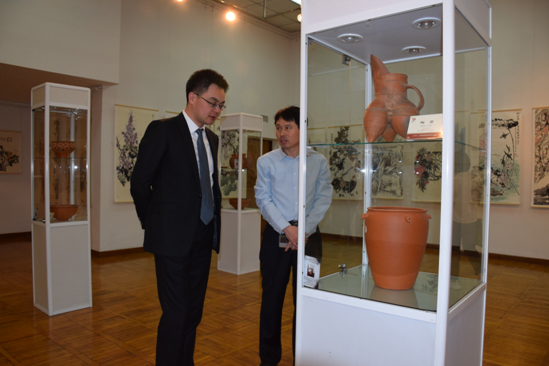 向吉國議員贈(zèng)送彩陶雙聯(lián)壺留念
