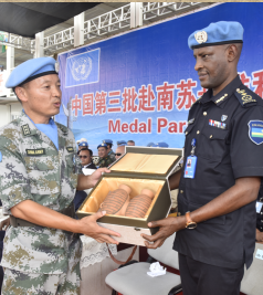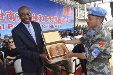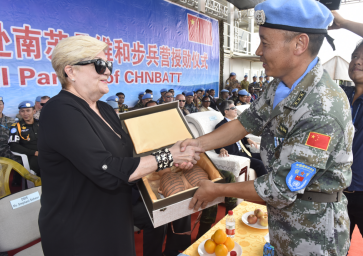 聯(lián)南蘇團(tuán)維和部隊(duì)向國際友人贈(zèng)彩陶助和諧