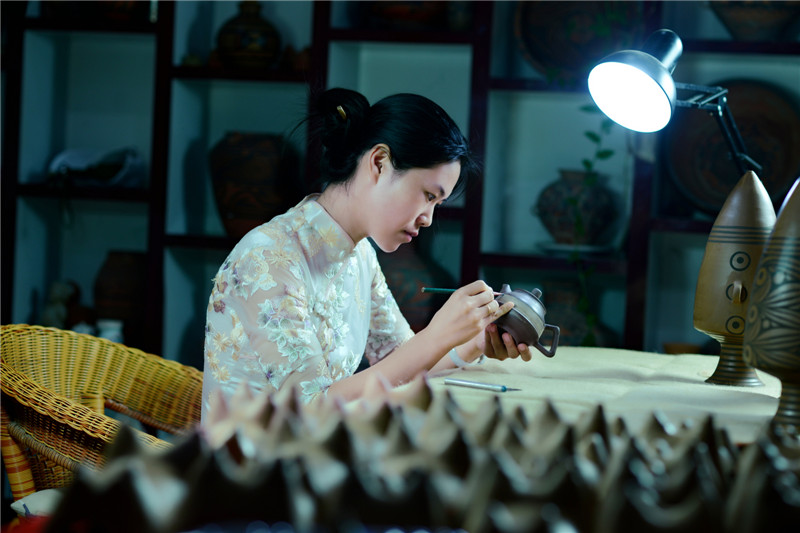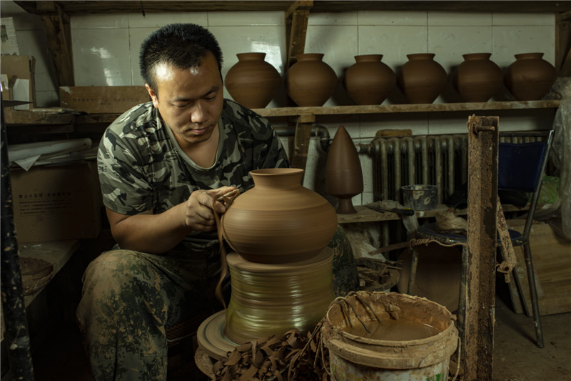 選用優(yōu)質(zhì)陶土,加上一把黃河泥,經(jīng)過(guò)打磨、雕刻、燒制等系列工序后,搖身一變成了一個(gè)古色古香的彩陶。河南仰韶科技開發(fā)有限公司總經(jīng)理、仰韶彩陶傳承人劉新安說(shuō),“我們?nèi)慷际侨斯ぶ铺?,秘法作業(yè),滿輪拉坯成型,天然無(wú)機(jī)顏料彩繪,差不多整個(gè)制作過(guò)程要兩周左右。”
